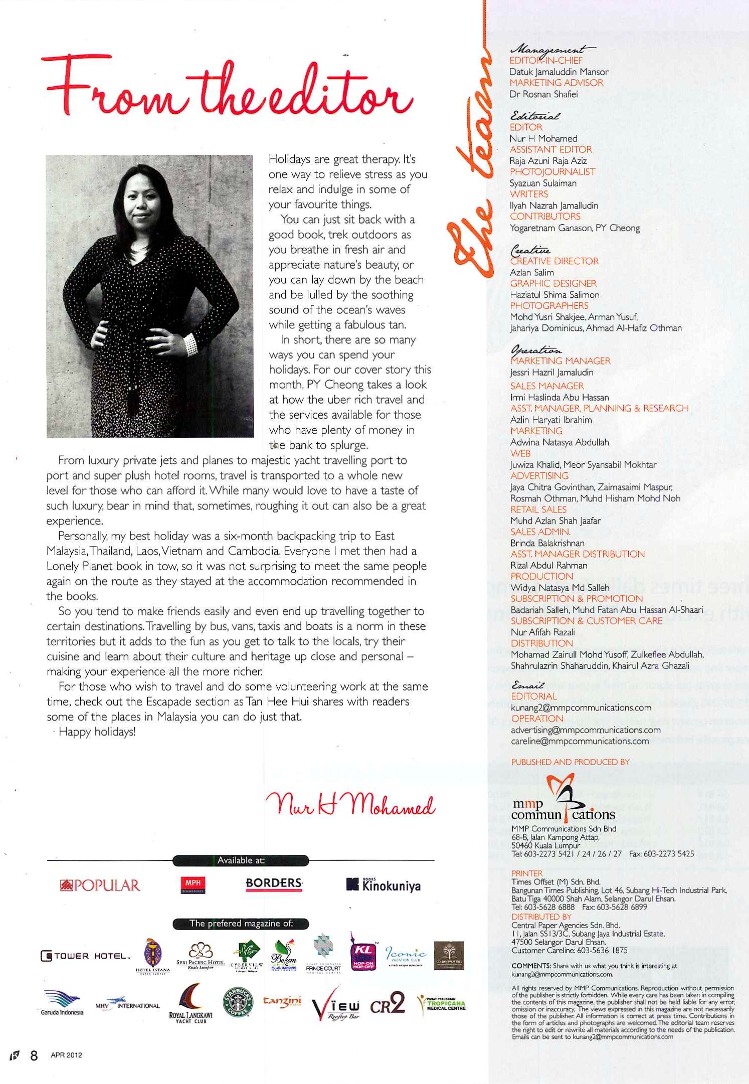 An exclusive lifestyle magazine only found in selected resorts, hotels and tourism outlets around Malaysia. Targeted for mid to high-end consumers, Kunang2 focuses on a mixture of lifestyle brands, luxury items, beauty products, to the latest in the virtual arena and hi-tech gadgets. The magazine also features food, hotels and travel reviews plus articles on local and international celebrities from entertainment industry, artisans, sports icons and out-of-the-box interviews with high profile personalities from other industries.