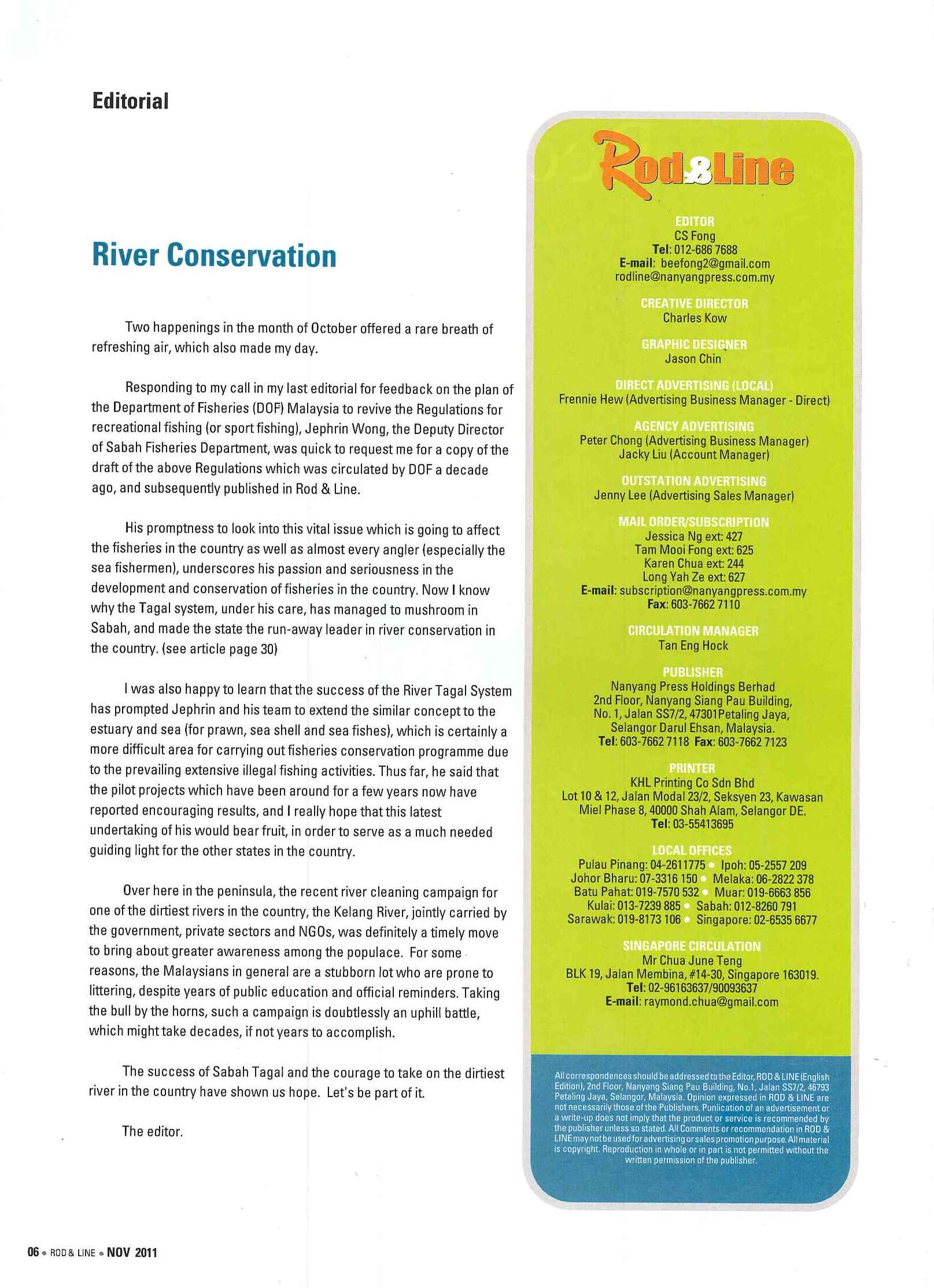 Furnish readers with the latest technological advances in fishing gear, information and guide on selection of equipments to suit different types of fishing.